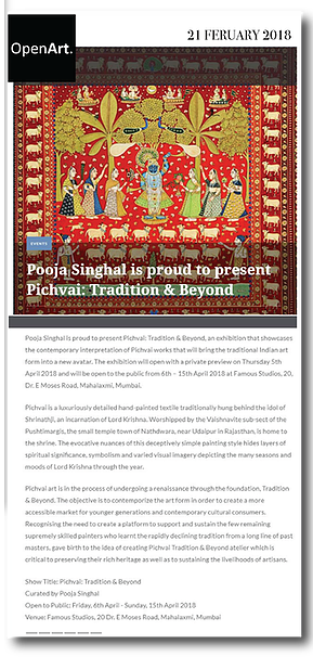 OpenArt Pooja Singhal is proud to present Pichvai: Tradition & Beyond Feb 21, 2018
