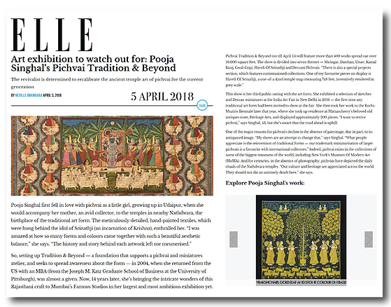 Elle Art exhibition to watch out for: Pooja Singhal's Pichvai Tradition & Beyond Apr 05, 2018