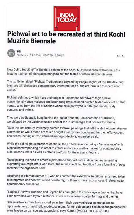 India Today Pichwai art to be recreated at third Kochi Muziris Biennale Sep 29, 2016