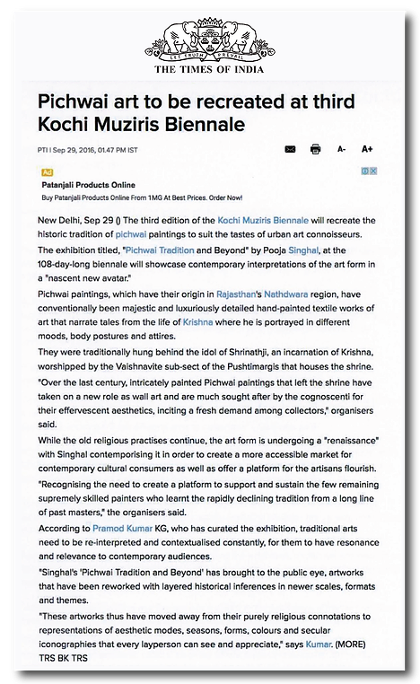 The Times of India Pichwai art to be recreated at third Kochi Muziris Biennale Sep 29, 2016