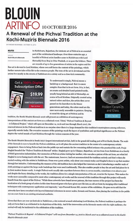 Blouin Artinfo A Renewal of the Pichvai Tradition at the Kochi-Muziris Biennale 2016 Oct 10, 2016