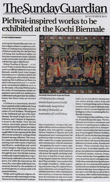 The Sunday Guardian Pichvai-inspired works to be exhibited at the Kochi Biennale Nov 20, 2016