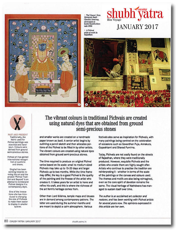 Shubh Yatra The vibrant colours in traditional Pichvais are created using natural dyes that are obtained from ground semi-precious stones Jan 12, 2017