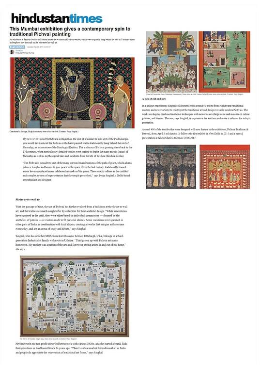 Hindustan Times This Mumbai exhibition gives a contemporary spin to traditional Pichvai painting Apr 03, 2018