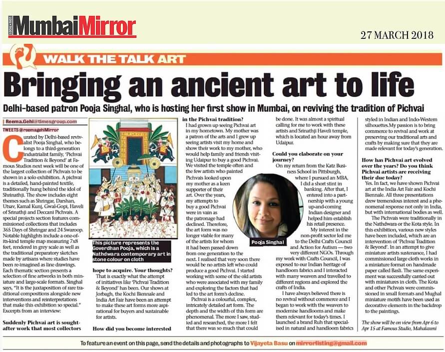 Mumbai Mirror An Evening with Pichvai Mar 23, 2018
