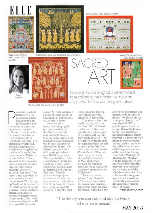Elle Art exhibition to watch out for: Pooja Singhal's Pichvai Tradition & Beyond Apr 05, 2018